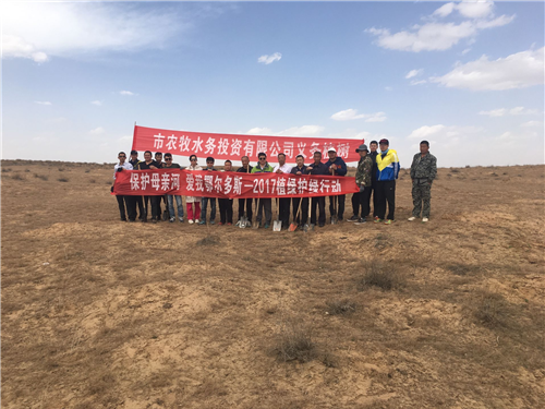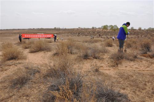 2017年4月14日,我公司組織員工19人到鄂前旗三段地馬場(chǎng)井村開展“保護(hù)母親河 愛我鄂爾多斯—2017植綠護(hù)綠行動(dòng)”。馬場(chǎng)井村長(zhǎng)年處于干旱、多風(fēng)沙季節(jié),為起到防風(fēng)固沙作用,通過(guò)與當(dāng)?shù)啬撩裣嗷f(xié)作利用一整天時(shí)間種植了20畝灌木檸條,為改善當(dāng)?shù)厣鷳B(tài)環(huán)境做出一份貢獻(xiàn)。