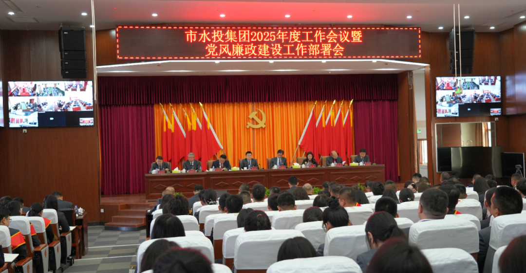3月7日,市水投集團召開2025年度工作會議暨黨風廉政建設(shè)工作部署會議,系統(tǒng)總結(jié)了2024年集團發(fā)展成果,精準分析研判當前面臨的形勢,科學謀劃部署2025年集團改革發(fā)展思路舉措和重點任務(wù)。集團公司領(lǐng)導班子、各級出資企業(yè)領(lǐng)導班子、集團全體干部職工在主會場參會,各旗區(qū)子企業(yè)職工參加視頻會議,會議由集團黨委副書記蘇新發(fā)主持。